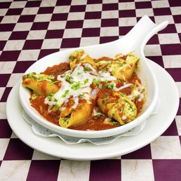 Stuffed Shells with Ricotta, Fontina Cheese, and Fresh Spinach, Topped with a Tomato Provenciale Sauce and Melted Mozzarella Cheese